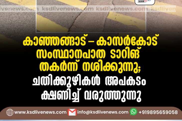 കാസർഗോഡ് കാഞ്ഞങ്ങാട്-കാസർകോട് സംസ്ഥാനപാത ടാറിങ് തകർന്ന് നശിക്കുന്നു; ചതിക്കുഴികൾ അപകടം ക്ഷനിച്ച് വരുത്തുന്നുJuly 13, 2024