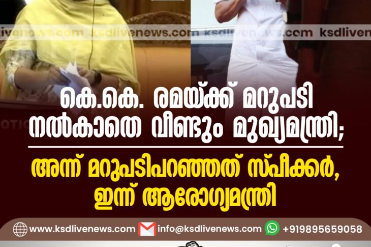കേരളം കെ.കെ. രമയ്ക്ക് മറുപടിനൽകാതെ വീണ്ടും മുഖ്യമന്ത്രി; അന്ന് മറുപടിപറഞ്ഞത് സ്പീക്കർ, ഇന്ന് ആരോഗ്യമന്ത്രിJuly 10, 2024