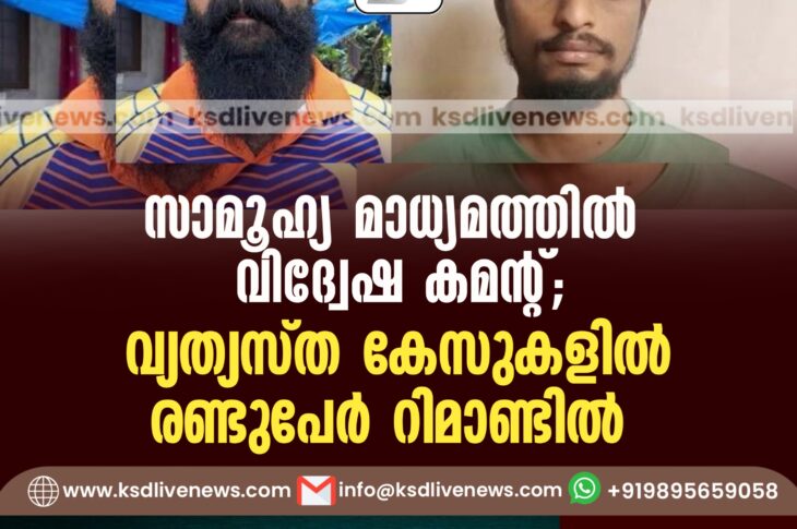കാസർഗോഡ് സാമൂഹ്യ മാധ്യമത്തില് വിദ്വേഷ കമന്റ്; വ്യത്യസ്ത കേസുകളില് രണ്ടുപേര് റിമാണ്ടില്July 8, 2024
