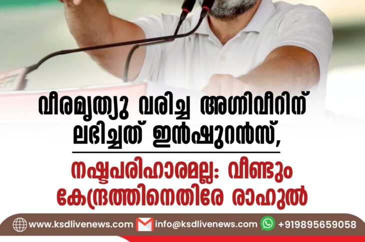 ദേശീയം വീരമൃത്യു വരിച്ച അഗ്നിവീറിന് ലഭിച്ചത് ഇൻഷുറൻസ്, നഷ്ടപരിഹാരമല്ല: വീണ്ടും കേന്ദ്രത്തിനെതിരേ രാഹുൽJuly 6, 2024
