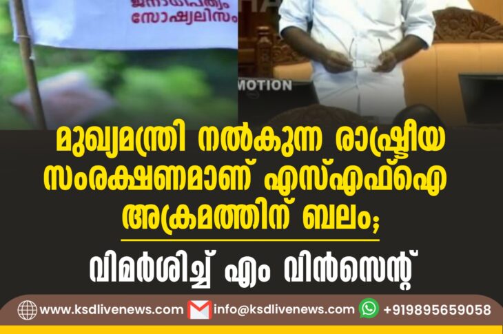 കേരളം മുഖ്യമന്ത്രി നൽകുന്ന രാഷ്ട്രീയ സംരക്ഷണമാണ് SFI അക്രമത്തിന് ബലം’; വിമർശിച്ച് എം വിൻസെന്റ്July 4, 2024