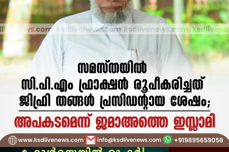 കേരളം സമസ്തയില് സിപിഎം ഫ്രാക്ഷന് രൂപീകരിച്ചത് ജിഫ്രി തങ്ങൾ പ്രസിഡന്റായ ശേഷം; അപകടമെന്ന് ജമാഅത്തെ ഇസ്ലാമിMay 24, 2024
