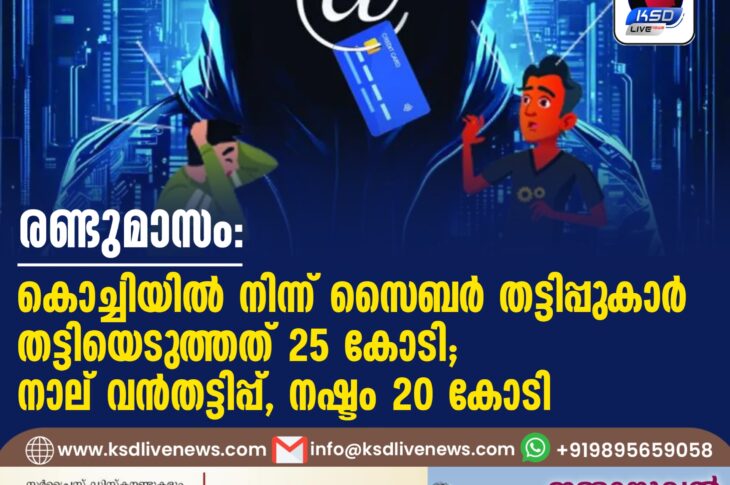 കേരളം രണ്ടുമാസം: കൊച്ചിയിൽനിന്ന് സൈബർ തട്ടിപ്പുകാർ തട്ടിയെടുത്തത് 25 കോടി; നാല് വൻതട്ടിപ്പ്, നഷ്ടം 20 കോടിJuly 3, 2024