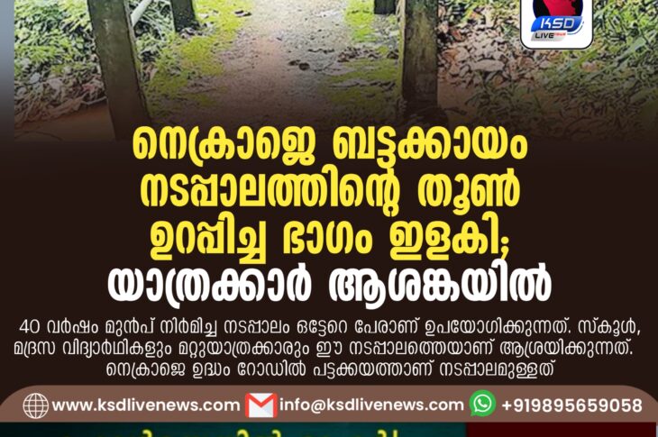 പ്രാദേശികം നെക്രാജെ ബട്ടക്കായം നടപ്പാലത്തിന്റെ തൂൺ ഉറപ്പിച്ച ഭാഗം ഇളകി; യാത്രക്കാർ ആശങ്കയിൽJuly 1, 2024