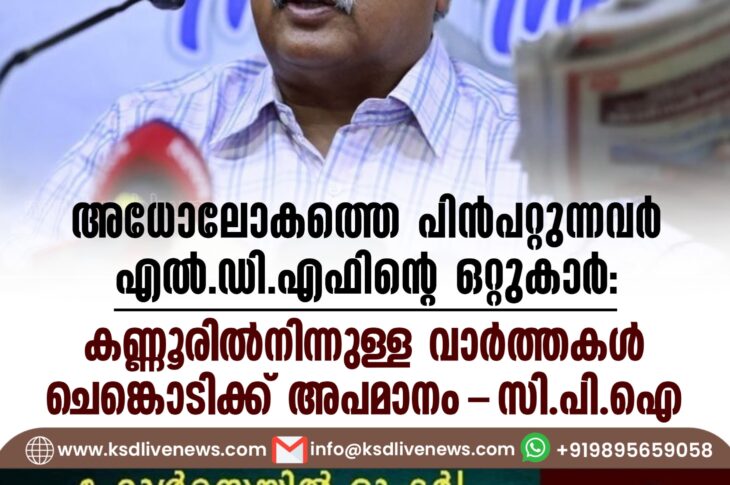 കേരളം അധോലോകത്തെ പിൻപറ്റുന്നവർ എൽഡിഎഫിന്റെ ഒറ്റുകാർ, കണ്ണൂരിൽനിന്നുള്ള വാർത്തകൾ ചെങ്കൊടിക്ക് അപമാനം- സിപിഐJune 29, 2024