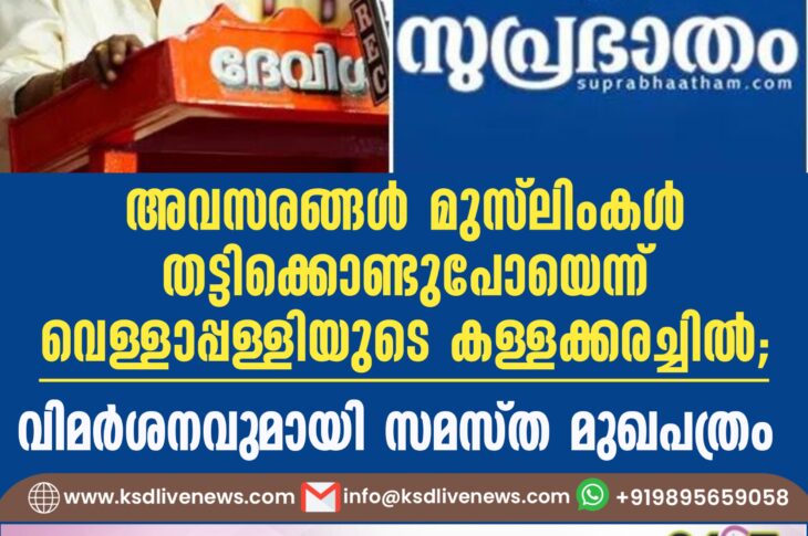 കേരളം അവസരങ്ങള് മുസ്ലിംകള് തട്ടിക്കൊണ്ടുപോയെന്ന് വെള്ളാപ്പള്ളിയുടെ കള്ളക്കരച്ചില്’: വിമർശനവുമായി സമസ്തJune 21, 2024