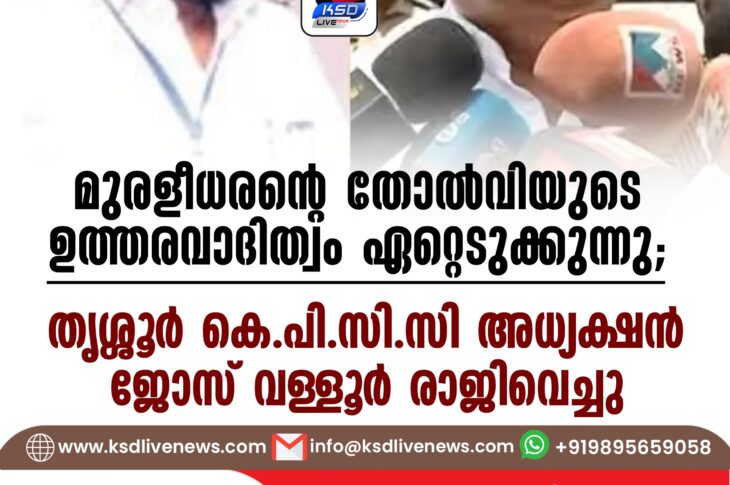 പ്രാദേശികം മുരളീധരന്റെ തോൽവിയുടെ ഉത്തരവാദിത്വം ഏറ്റെടുക്കുന്നു’; തൃശ്ശൂർ DCC അധ്യക്ഷൻ ജോസ് വള്ളൂർ രാജിവെച്ചുJune 10, 2024