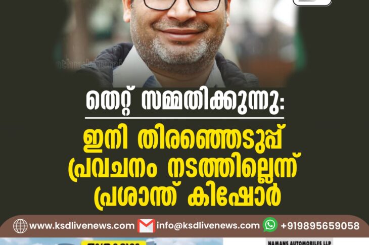 ദേശീയം തെറ്റ് സമ്മതിക്കുന്നു’; ഇനി തിരഞ്ഞെടുപ്പ് പ്രവചനം നടത്തില്ലെന്ന് പ്രശാന്ത് കിഷോര്June 8, 2024