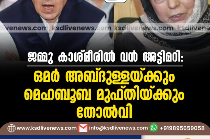 ദേശീയം ജമ്മു കാശ്മീരില് വൻ അട്ടിമറി, ഒമര് അബ്ദുള്ളയ്ക്കും മെഹബൂബ മുഫ്തിയ്ക്കും തോല്വിJune 4, 2024