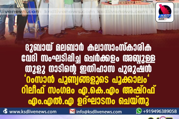 പ്രാദേശികം ദുബായ് മലബാർ കലാസാംസ്കാരിക വേദി സംഘടിപ്പിച്ച ചെർക്കളം അബ്ദുള്ള തുളു നാടിന്റെ ഇതിഹാസ പുരുഷൻ “റംസാൻ പുണ്യങ്ങളുടെ പൂക്കാലം” റിലീഫ് സംഗമം എ.കെ.എം അഷ്റഫ് എം.എൽ.എ ഉദ്ഘാടനം ചെയ്തുMarch 25, 2024