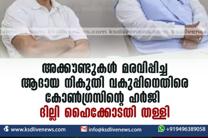 ദേശീയം അക്കൗണ്ടുകൾ മരവിപ്പിച്ച ആദായ നികുതി വകുപ്പിനെതിരെ കോൺഗ്രസിന്റെ ഹർജി ദില്ലി ഹൈക്കോടതി തള്ളിMarch 22, 2024