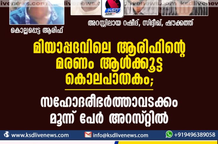 കാസർഗോഡ് മിയാപ്പദവിലെ ആരിഫിന്റെ മരണം ആള്ക്കൂട്ട കൊലപാതകം; സഹോദരീഭര്ത്താവടക്കം മൂന്ന് പേര് അറസ്റ്റില്March 7, 2024