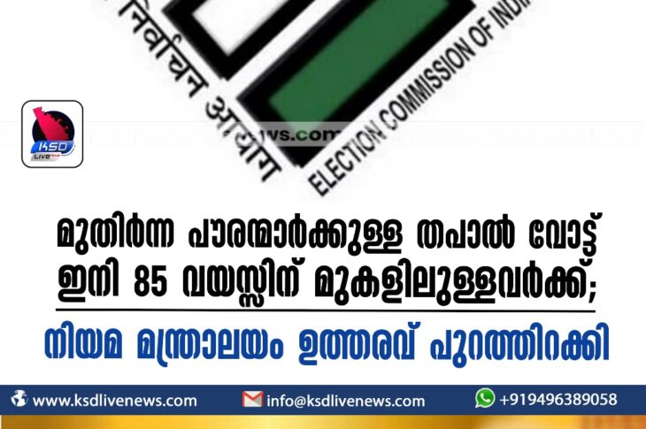 കേരളം മുതിര്ന്ന പൗരന്മാര്ക്കുള്ള തപാല് വോട്ട് ഇനി 85 വയസ്സിന് മുകളിലുള്ളവര്ക്ക്; നിയമ മന്ത്രാലയം ഉത്തരവ് പുറത്തിറക്കിMarch 2, 2024
