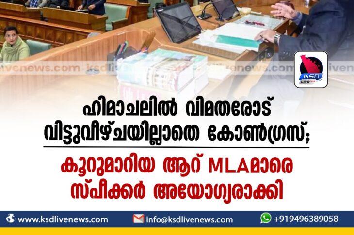ദേശീയം ഹിമാചലില് വിമതരോട് വിട്ടുവീഴ്ചയില്ലാതെ കോണ്ഗ്രസ്; കൂറുമാറിയ ആറ് MLAമാരെ സ്പീക്കര് അയോഗ്യരാക്കിFebruary 29, 2024