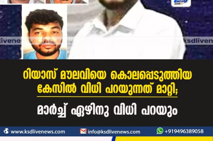 കാസർഗോഡ് റിയാസ് മൗലവിയെ കൊലപ്പെടുത്തിയ കേസിൽ വിധി പറയുന്നത് മാറ്റി; മാർച്ച് ഏഴിനു വിധി പറയുംFebruary 29, 2024