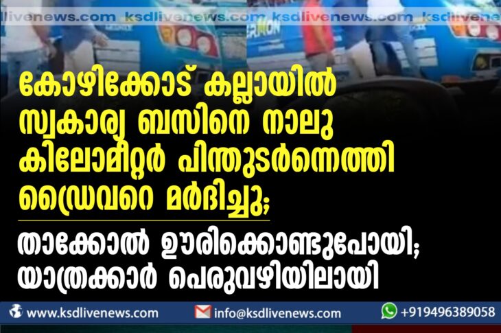 പ്രാദേശികം കോഴിക്കോട് കല്ലായിൽ സ്വകാര്യ ബസിനെ നാലു കിലോമീറ്റര് പിന്തുടര്ന്നെത്തി ഡ്രൈവറെ മര്ദിച്ചു; താക്കോല് ഊറിക്കൊണ്ടുപോയി; യാത്രക്കാർ പെരുവഴിയിൽFebruary 5, 2024
