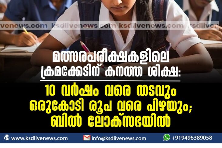 കേരളം മത്സരപരീക്ഷകളിലെ ക്രമക്കേടിന് കനത്ത ശിക്ഷ: 10 വർഷംവരെ തടവും ഒരുകോടി രൂപവരെ പിഴയും; ബിൽ ലോക്സഭയിൽFebruary 6, 2024