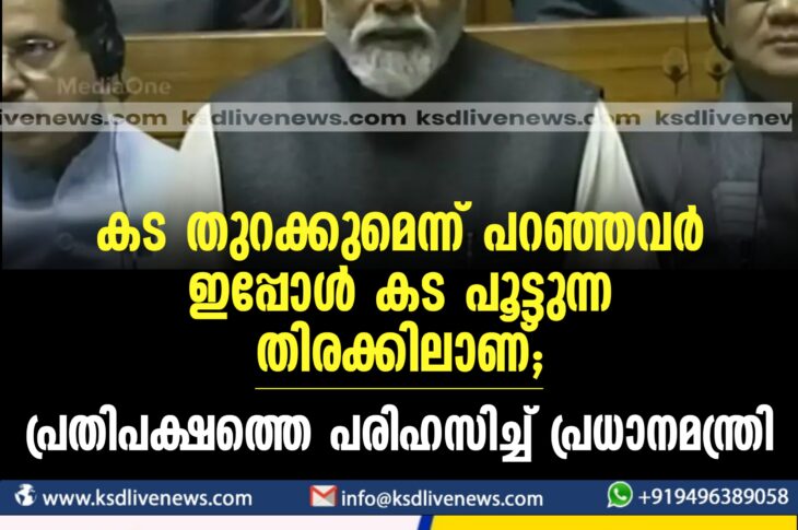ദേശീയം കട തുറക്കുമെന്ന് പറഞ്ഞവര് ഇപ്പോള് കട പൂട്ടുന്ന തിരക്കിലാണ്’; പ്രതിപക്ഷത്തെ പരിഹസിച്ച് പ്രധാനമന്ത്രിFebruary 5, 2024