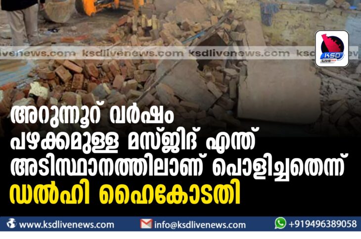 ദേശീയം അറുന്നൂറ് വർഷം പഴക്കമുള്ള മസ്ജിദ് എന്ത് അടിസ്ഥാനത്തിലാണ് പൊളിച്ചതെന്ന് ഡൽഹി ഹൈകോടതിFebruary 1, 2024