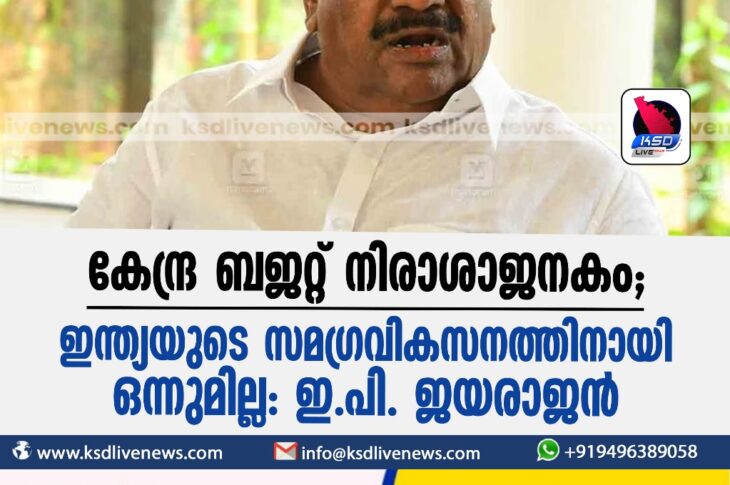 കേരളം കേന്ദ്രബജറ്റ് നിരാശാജനകം; ഇന്ത്യയുടെ സമഗ്രവികസനത്തിനായി ഒന്നുമില്ല: ഇ.പി. ജയരാജൻFebruary 1, 2024