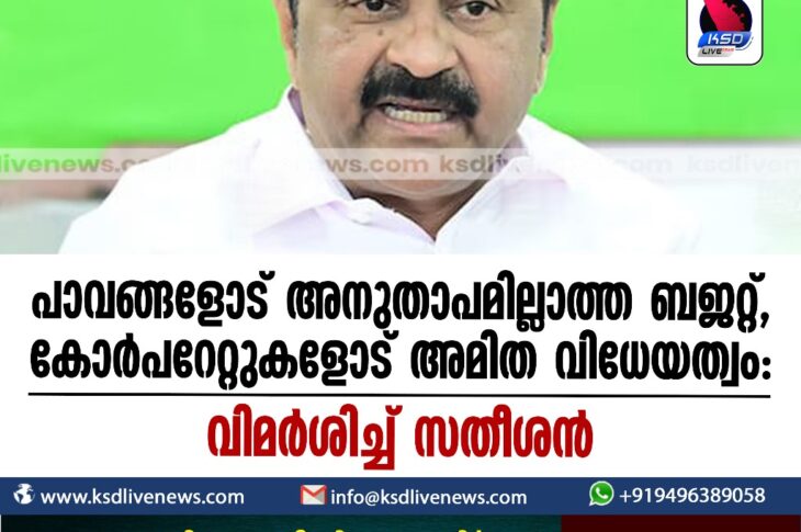 കേരളം പാവങ്ങളോട് അനുതാപമില്ലാത്ത ബജറ്റ്, കോര്പറേറ്റുകളോട് അമിത വിധേയത്വം’: വിമർശിച്ച് സതീശൻFebruary 1, 2024
