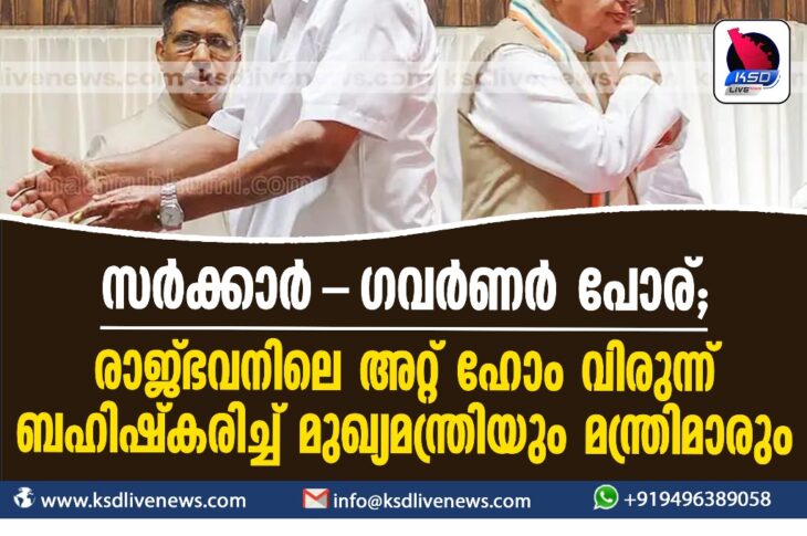 കേരളം സർക്കാർ-ഗവർണർ പോര്; രാജ്ഭവനിലെ അറ്റ് ഹോം വിരുന്ന് ബഹിഷ്കരിച്ച് മുഖ്യമന്ത്രിയും മന്ത്രിമാരുംJanuary 26, 2024