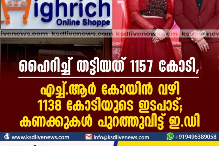 കേരളം ഹെെറിച്ച് തട്ടിയത് 1157 കോടി, HR കോയിൻ വഴി 1138 കോടിയുടെ ഇടപാട്; കണക്കുകൾ പുറത്തുവിട്ട് ഇ.ഡി.January 26, 2024