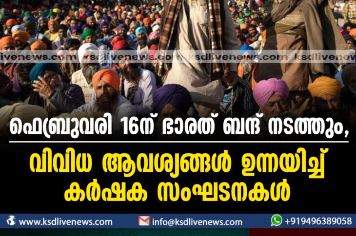 ദേശീയം ഫെബ്രുവരി 16ന് ഭാരത് ബന്ദ് നടത്തും, വിവിധ ആവശ്യങ്ങള് ഉന്നയിച്ച് കര്ഷക സംഘടനകള്/January 24, 2024