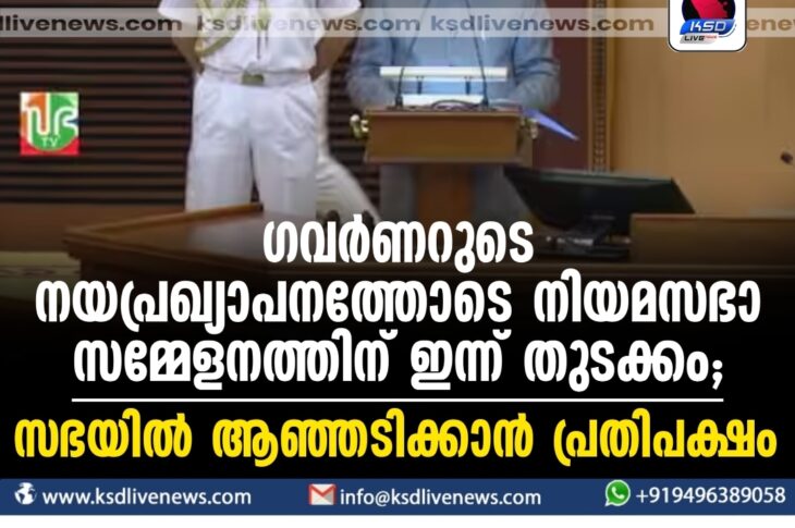 കേരളം ഗവര്ണറുടെ നയപ്രഖ്യാപനത്തോടെ നിയമസഭാ സമ്മേളനത്തിന് ഇന്ന് തുടക്കം; സഭയില് ആഞ്ഞടിക്കാൻ പ്രതിപക്ഷംJanuary 25, 2024