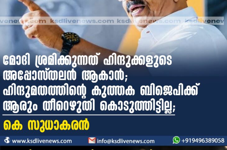 കേരളം മോദി ശ്രമിക്കുന്നത് ഹിന്ദുക്കളുടെ അപ്പോസ്തലന് ആകാൻ; ഹിന്ദുമതത്തിന്റെ കുത്തക ബിജെപിക്ക് ആരും തീറെഴുതി കൊടുത്തിട്ടില്ല ; കെ സുധാകരൻJanuary 22, 2024