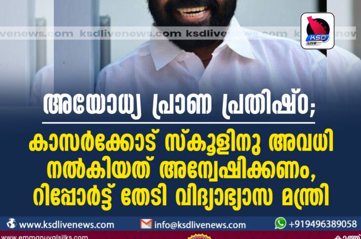 കേരളം അയോധ്യ പ്രാണ പ്രതിഷ്ഠ; കാസർക്കോട് സ്കൂളിനു അവധി നൽകിയത് അന്വേഷിക്കണം, റിപ്പോർട്ട് തേടി വിദ്യാഭ്യാസ മന്ത്രിJanuary 22, 2024