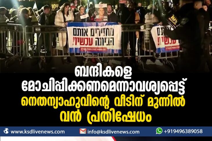 വിദേശം ബന്ദികളെ മോചിപ്പിക്കണമെന്നാവശ്യപ്പെട്ട് നെതന്യാഹുവിന്റെ വീടിന് മുന്നില് വൻ പ്രതിഷേധംJanuary 20, 2024