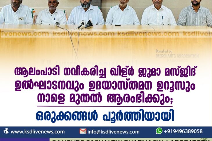 പ്രാദേശികം ആലംപാടി നവീകരിച്ച ഖിള്ർ ജുമാമസ്ജിദ് ഉൽഘാടനവും ഉദയാസ്തമനഉറൂസും നാളെ മുതൽ ആരംഭിക്കും; ഒരുക്കങ്ങൾ പൂർത്തിയായിJanuary 20, 2024