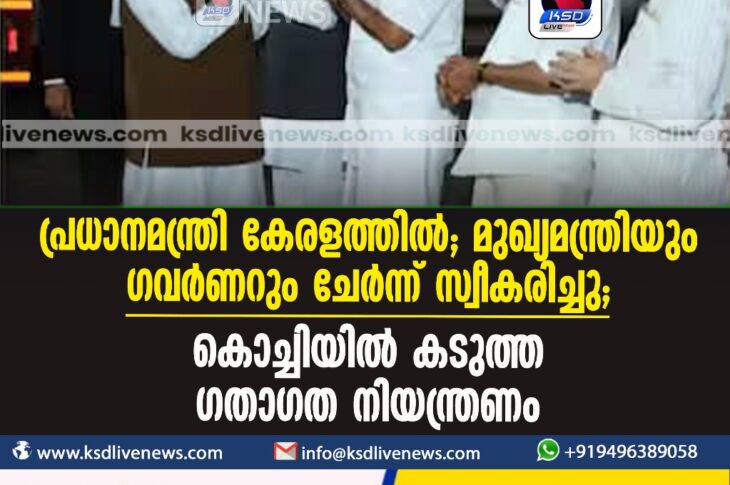 കേരളം പ്രധാനമന്ത്രി കേരളത്തിൽ; മുഖ്യമന്ത്രിയും ഗവര്ണറും ചേര്ന്ന് സ്വീകരിച്ചു, കൊച്ചിയില് കടുത്ത ഗതാഗത നിയന്ത്രണംJanuary 16, 2024