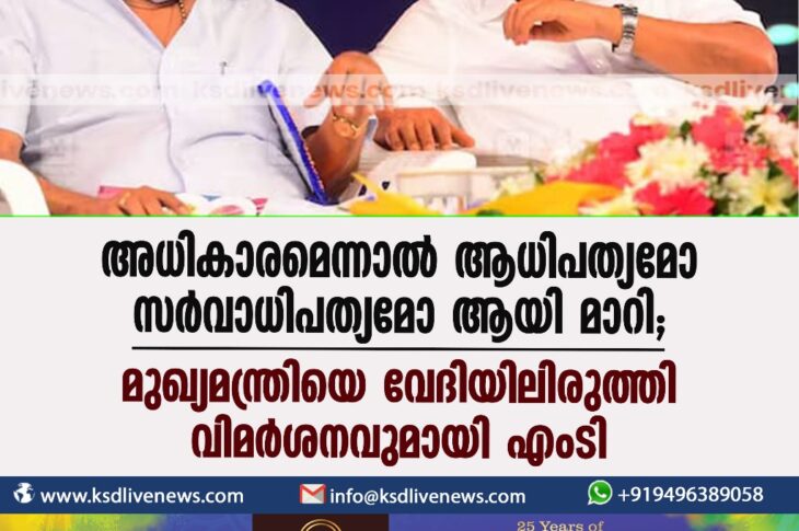 കേരളം അധികാരമെന്നാൽ ആധിപത്യമോ സർവാധിപത്യമോ ആയി മാറി: മുഖ്യമന്ത്രിയെ വേദിയിലിരുത്തി വിമർശനവുമായി എംടിJanuary 11, 2024