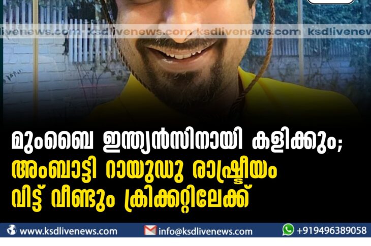 കായികം മുംബൈ ഇന്ത്യന്സി’നായി കളിക്കും; അംബാട്ടി റായുഡു രാഷ്ട്രീയം വിട്ട് വീണ്ടും ക്രിക്കറ്റിലേക്ക്January 8, 2024