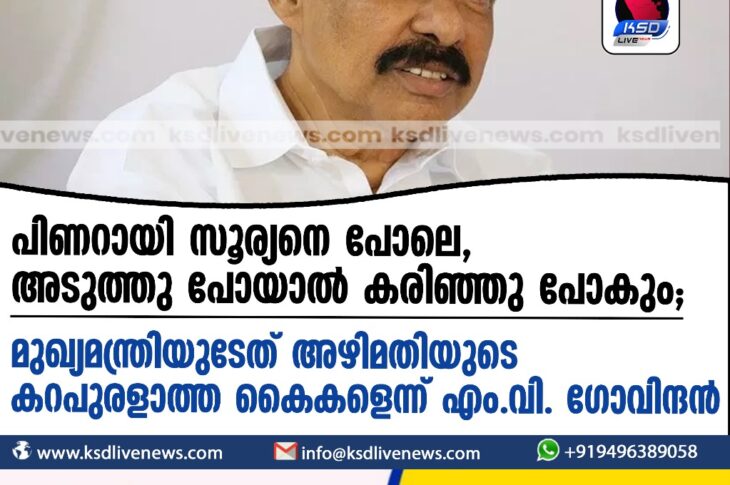 കേരളം പിണറായി സൂര്യനെ പോലെ, അടുത്തു പോയാല് കരിഞ്ഞു പോകും; മുഖ്യമന്ത്രിയുടേത് അഴിമതിയുടെ കറപുരളാത്ത കൈകളെന്ന് എം.വി. ഗോവിന്ദൻJanuary 5, 2024