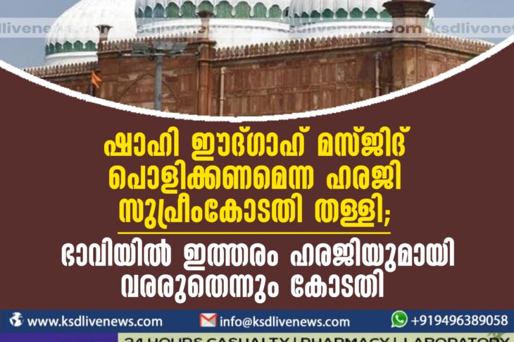 ദേശീയം ഷാഹി ഈദ്ഗാഹ് മസ്ജിദ് പൊളിക്കണമെന്ന ഹരജി സുപ്രീം കോടതി തള്ളി; ഭാവിയില് ഇത്തരം ഹരജിയുമായി വരരുതെന്നും കോടതിJanuary 5, 2024