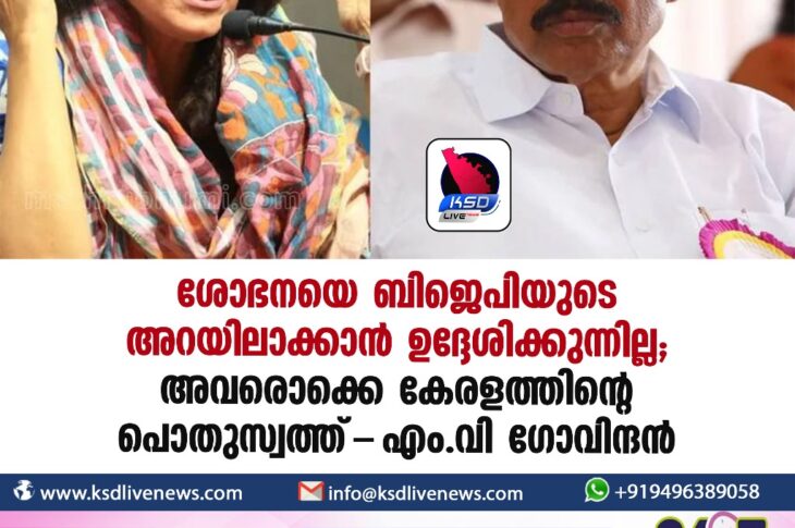 കേരളം ശോഭനയെ ബിജെപിയുടെ അറയിലാക്കാൻ ഉദ്ദേശിക്കുന്നില്ല; അവരൊക്കെ കേരളത്തിന്റെ പൊതുസ്വത്ത്- എം.വി ഗോവിന്ദൻJanuary 4, 2024
