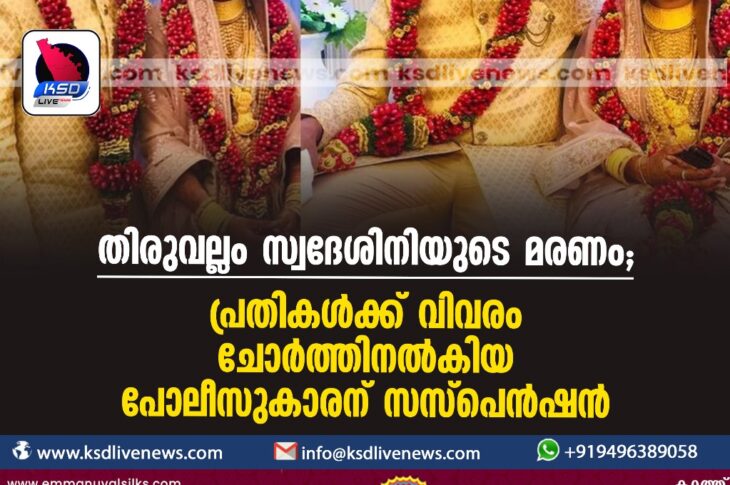 കേരളം തിരുവല്ലം സ്വദേശിനിയുടെ മരണം: പ്രതികള്ക്ക് വിവരം ചോര്ത്തിനല്കിയ പോലീസുകാരന് സസ്പെന്ഷന്January 4, 2024