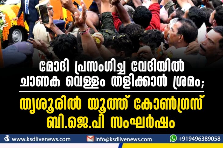 കേരളം മോദി പ്രസംഗിച്ച വേദിയിൽ ചാണക വെള്ളം തളിക്കാൻ ശ്രമം; തൃശൂരിൽ യൂത്ത് കോൺഗ്രസ്-ബിജെപി സംഘർഷംJanuary 4, 2024