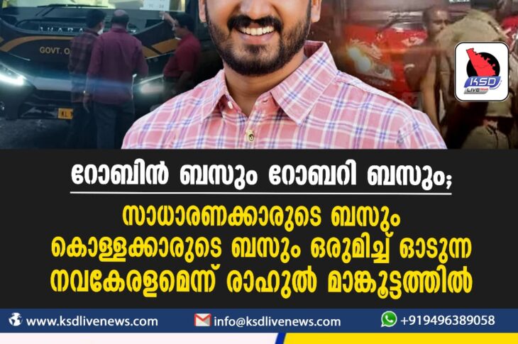 Uncategorized റോബിൻ ബസും റോബറി ബസും; സാധാരണക്കാരുടെ ബസും കൊള്ളക്കാരുടെ ബസും ഒരുമിച്ച് ഓടുന്ന നവകേരളമെന്ന് രാഹുൽ മാങ്കൂട്ടത്തിൽNovember 18, 2023