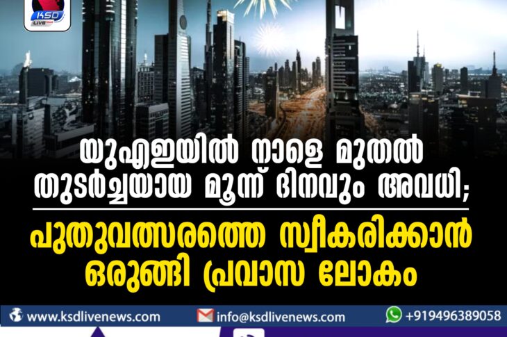 ഗൾഫ് യുഎഇയിൽ നാളെ മുതൽ തുടർച്ചയായ മൂന്ന് ദിനവും അവധി; പുതുവത്സരത്തെ സ്വീകരിക്കാൻ ഒരുങ്ങി പ്രവാസ ലോകംDecember 29, 2023