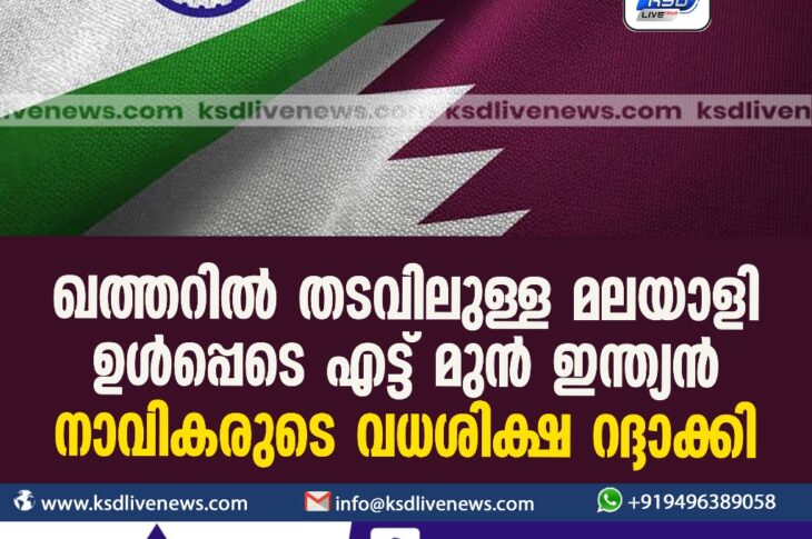 ഗൾഫ് ഖത്തറില് തടവിലുള്ള മലയാളി ഉൾപ്പെടെ എട്ട് മുൻ ഇന്ത്യന് നാവികരുടെ വധശിക്ഷ റദ്ദാക്കിDecember 28, 2023