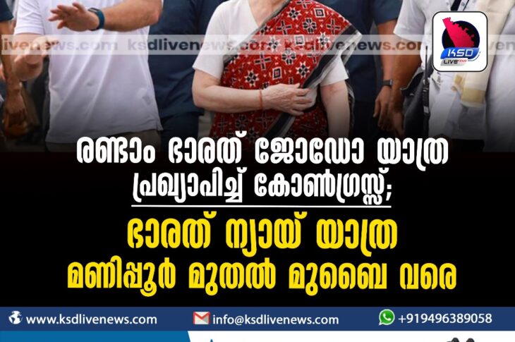 ദേശീയം രണ്ടാം ഭാരത് ജോഡോ യാത്ര പ്രഖ്യാപിച്ച് കോൺഗ്രസ്സ്; ‘ഭാരത് ന്യായ് യാത്ര’ മണിപ്പൂർ മുതൽ മുബൈ വരെDecember 27, 2023