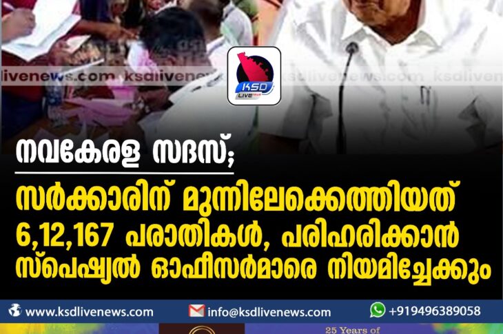 കേരളം നവകേരള സദസ്; സർക്കാരിന് മുന്നിലേക്കെത്തിയത് 6,12,167 പരാതികൾ, പരിഹരിക്കാന് സ്പെഷ്യൽ ഓഫീസർമാരെ നിയമിച്ചേക്കുംDecember 26, 2023