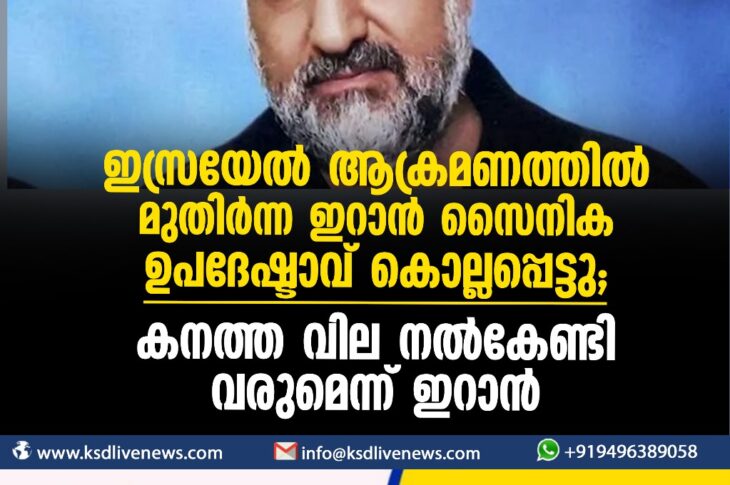 വിദേശം ഇസ്രയേൽ ആക്രമണത്തിൽ മുതിർന്ന ഇറാൻ സൈനിക ഉപദേഷ്ടാവ് കൊല്ലപ്പെട്ടു; കനത്ത വില നൽകേണ്ടി വരുമെന്ന് ഇറാൻDecember 26, 2023