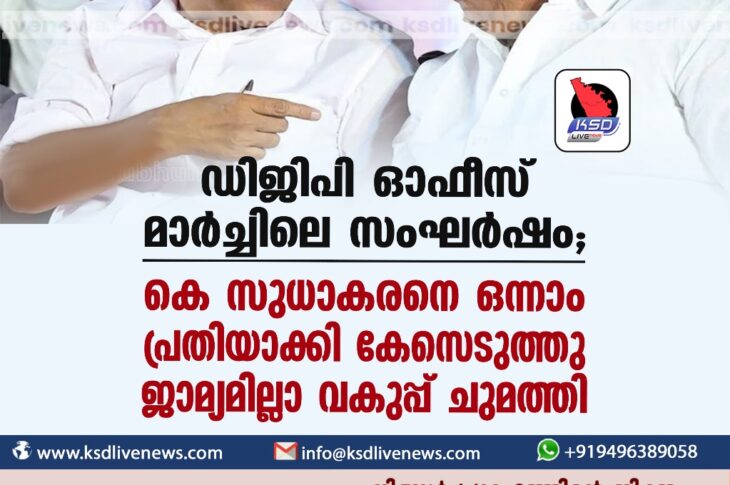 കേരളം ഡിജിപി ഓഫീസ് മാർച്ചിലെ സംഘർഷം; കെ സുധാകരനെ ഒന്നാംപ്രതിയാക്കി കേസെടുത്തു, ജാമ്യമില്ലാ വകുപ്പ് ചുമത്തിDecember 24, 2023