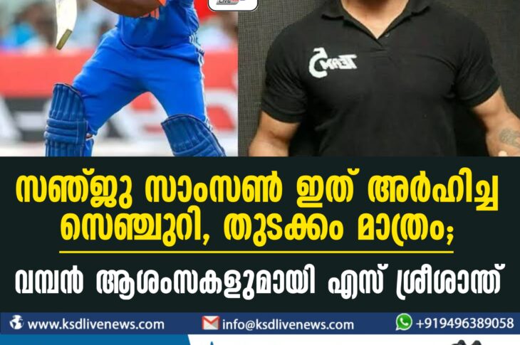 കായികം സഞ്ജു സാംസണ്… ‘ഇത് അർഹിച്ച സെഞ്ചുറി, തുടക്കം മാത്രം’; വമ്പന് ആശംസകളുമായി എസ് ശ്രീശാന്ത്December 22, 2023