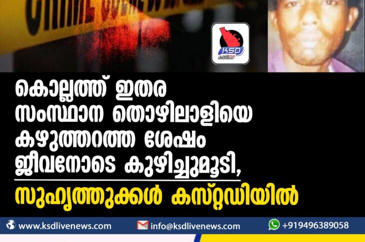 കേരളം കൊല്ലത്ത് ഇതരസംസ്ഥാന തൊഴിലാളിയെ കഴുത്തറത്തശേഷം ജീവനോടെ കുഴിച്ചുമൂടി, സുഹൃത്തുക്കൾ കസ്റ്റഡിയിൽDecember 22, 2023